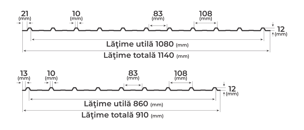 Lățime utilă de acoperire 1080 mm | 860 mm